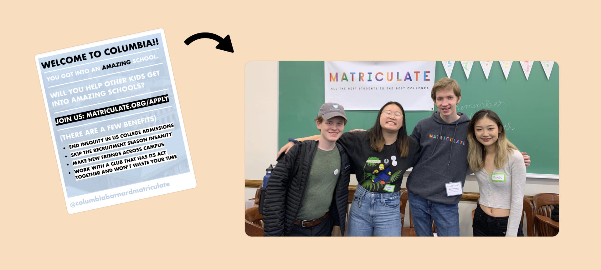 I was hired to lead Matriculate at Columbia in my third year with the program. As I prepared to recruit new volunteers, I analyzed my previous user experience and realized that my journey was rocky because no part of the Matriculate recruitment process was user-centric.I theorized that if I could build an accurate user persona, I could imagine a recruitment journey that centered users. Then, I could redesign the process around that journey.