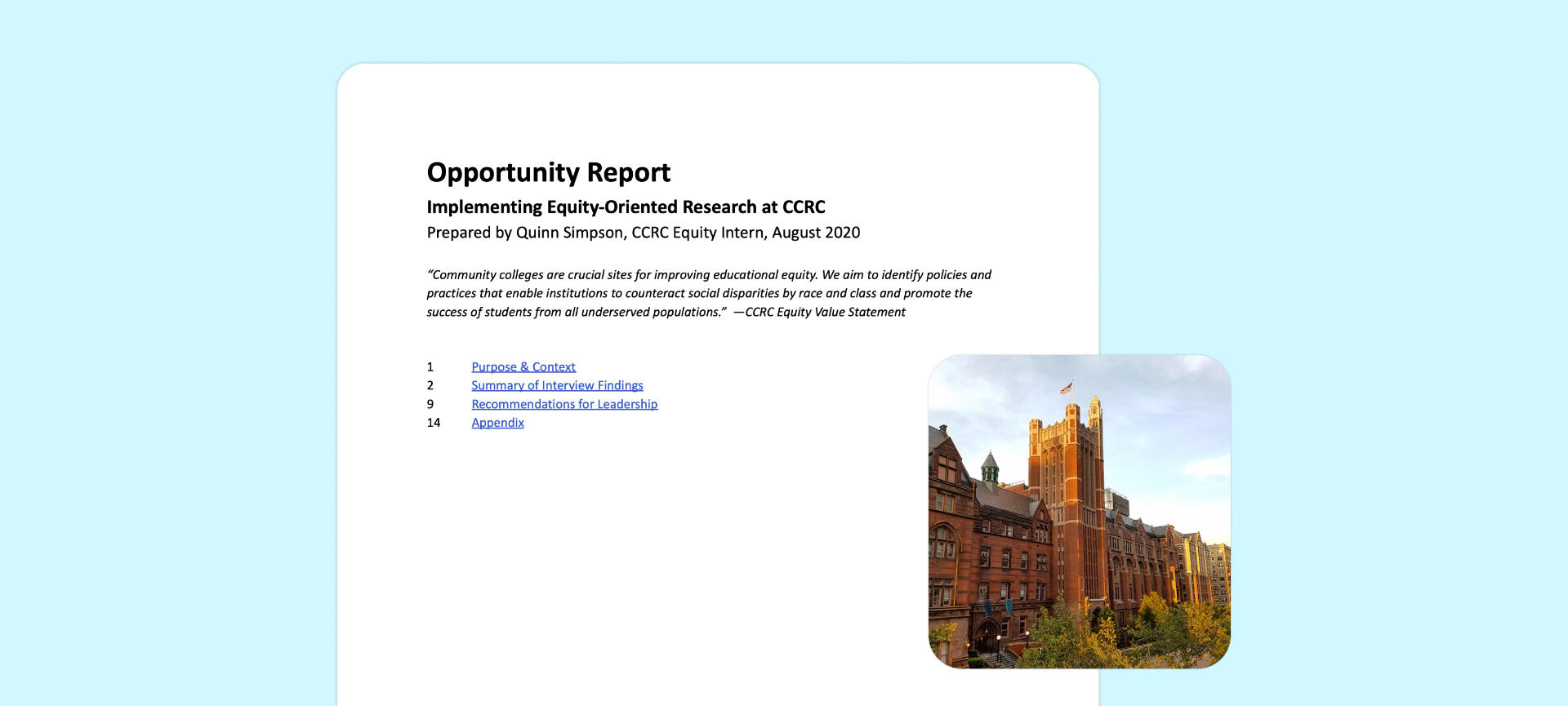 I was hired by the Community College Research Center to complete a comprehensive study of its research development process user experience in order to identify high-level solution areas to orient the Center to Diversity, Equity and Inclusion.