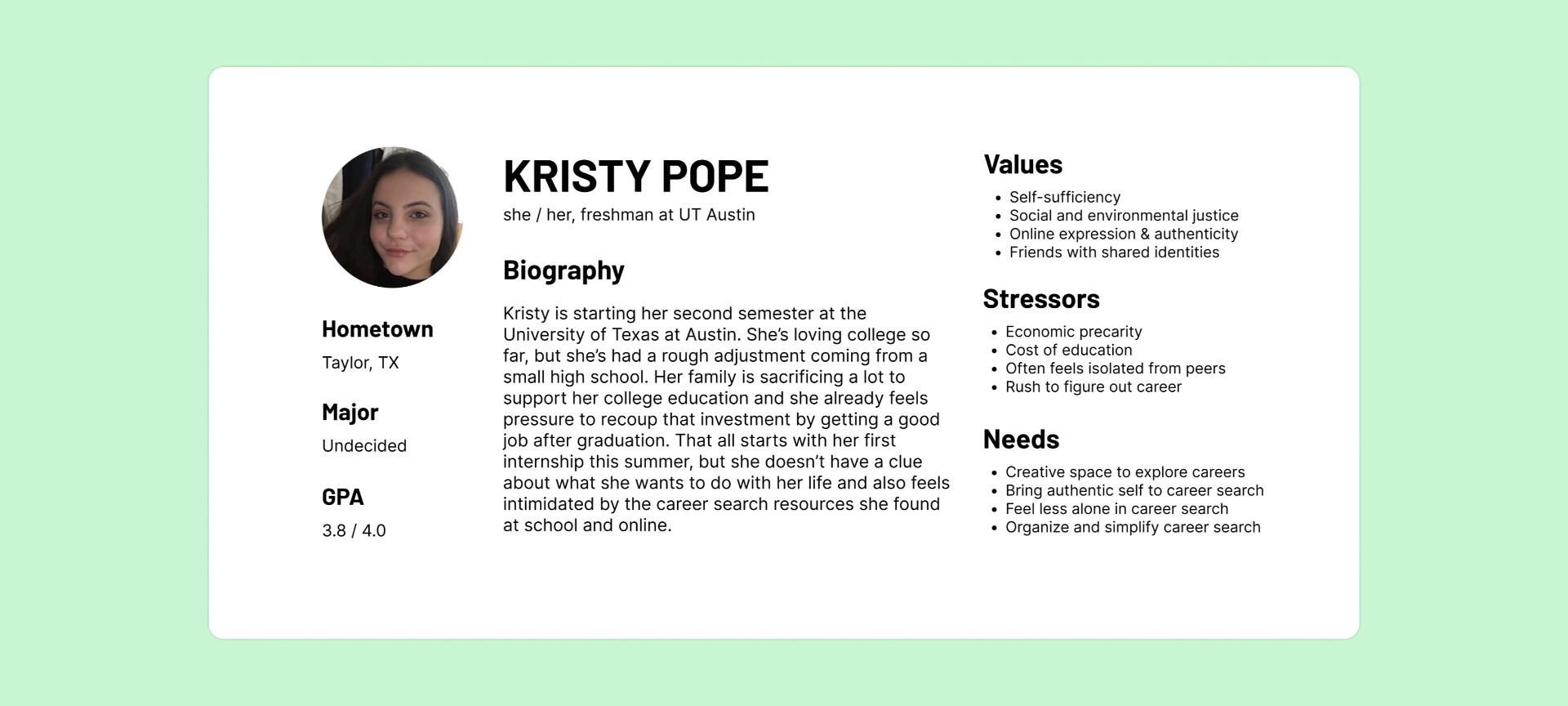Myself and my co-founder knew that we wanted to help underrepresented Gen Z students navigate the college and career process, which formed the foundation of our user persona.